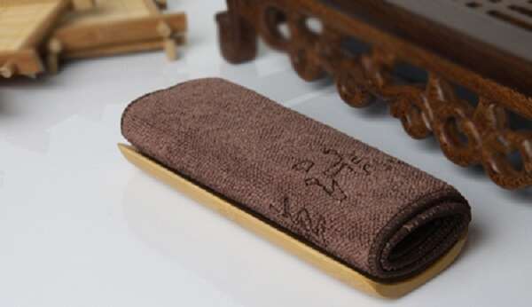 茶巾:用來(lái)擦拭泡茶過程中茶具上的水漬、茶漬,尤其是茶壺,品杯等的側(cè)部、底部的水漬和茶漬。切記只能擦拭茶具,而且是擦拭茶具飲茶、出茶湯以外的部位,不能用來(lái)清理泡茶桌上的水、污漬,果皮物。
