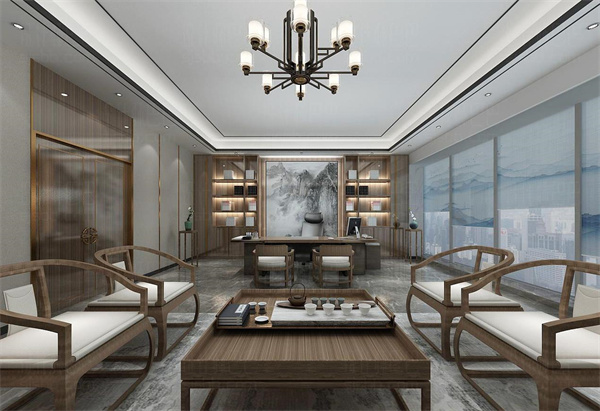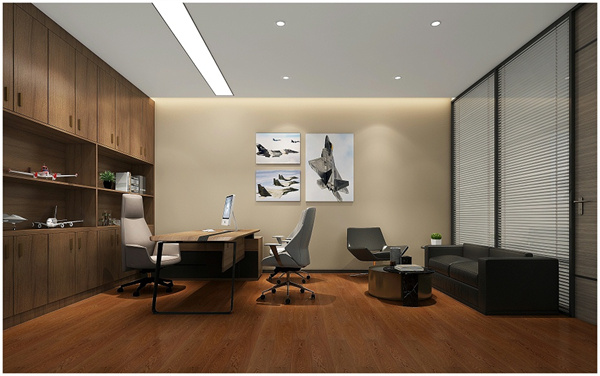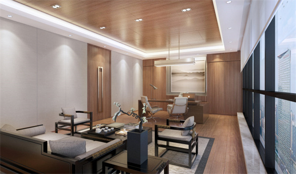 董事長辦公室裝潢設計采用的新中式風格,環(huán)境采用白色和原木色的搭配使用,突出董事長氣質(zhì),沉穩(wěn)的同時又不失時尚。