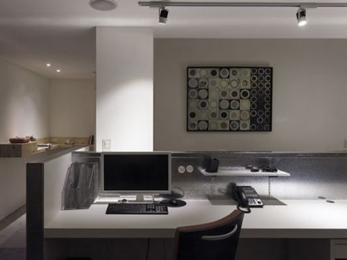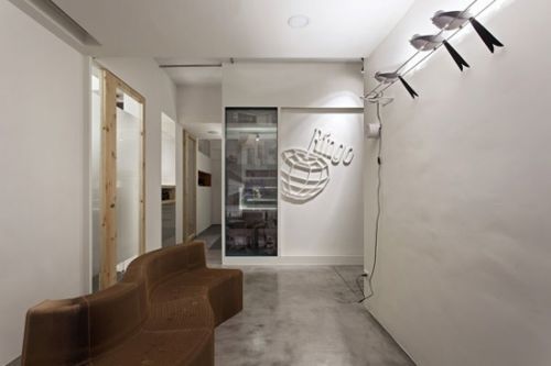 編輯點評:辦公室入口的面積相對較小,設計師很巧妙地采用矩形瓷磚、并且在末端采用深色瓷磚進行裝飾,顯出放射狀,有放大視覺效果的功能。
