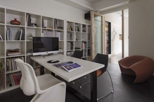 編輯點評:簡約的辦公室離不開合理的收納設計。清美學辦公室采用掛式收納,簡單的直線條對應簡約風,與環(huán)境融為一體,同時發(fā)揮強大的收納功能。
