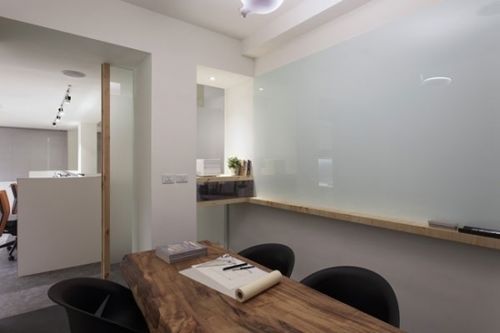 編輯點評:用矮墻隔斷出辦公區(qū)與公共區(qū),整體色調(diào)風格一致,不脫離簡約風的主題。
