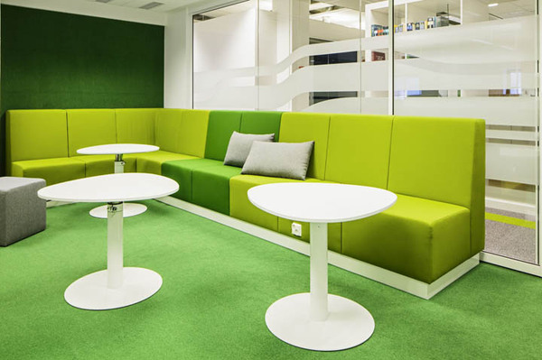 由弧形沙發(fā)構(gòu)筑的獨(dú)立空間功能強(qiáng)大,即可用作非正式小聚也可用作公司正式會(huì)議。