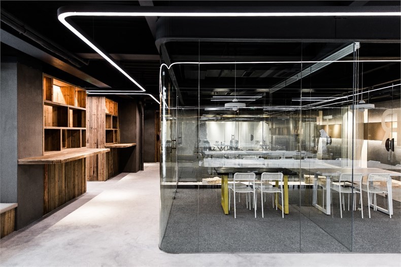 必要的獨(dú)立空間采用落地的透明玻璃隔斷