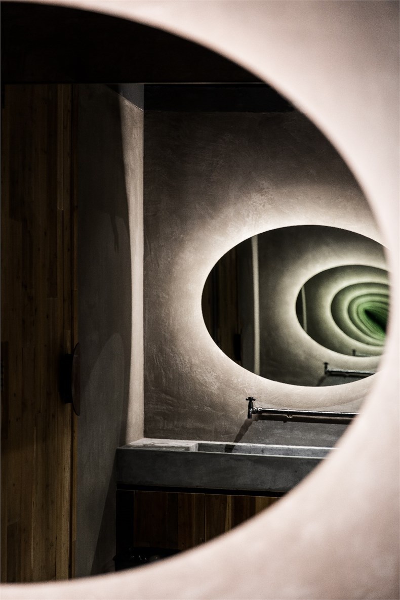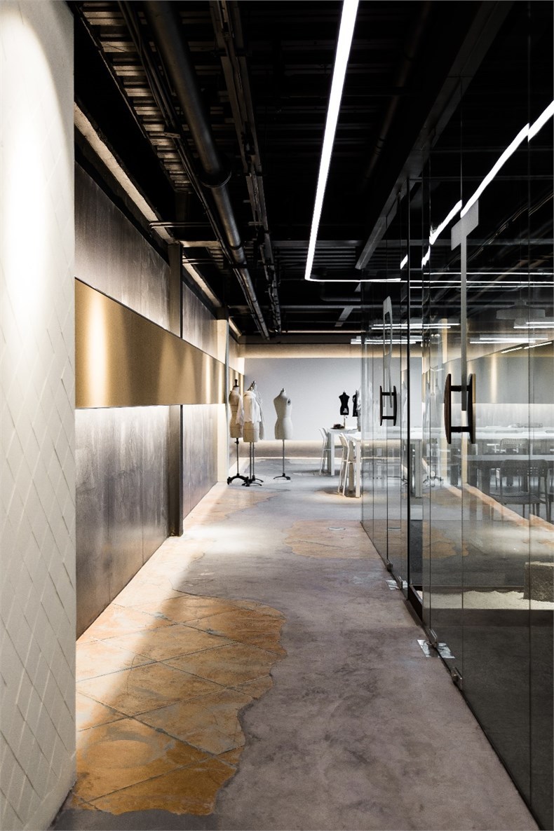地面則隨機(jī)保留原有地磚與混凝土相結(jié)合