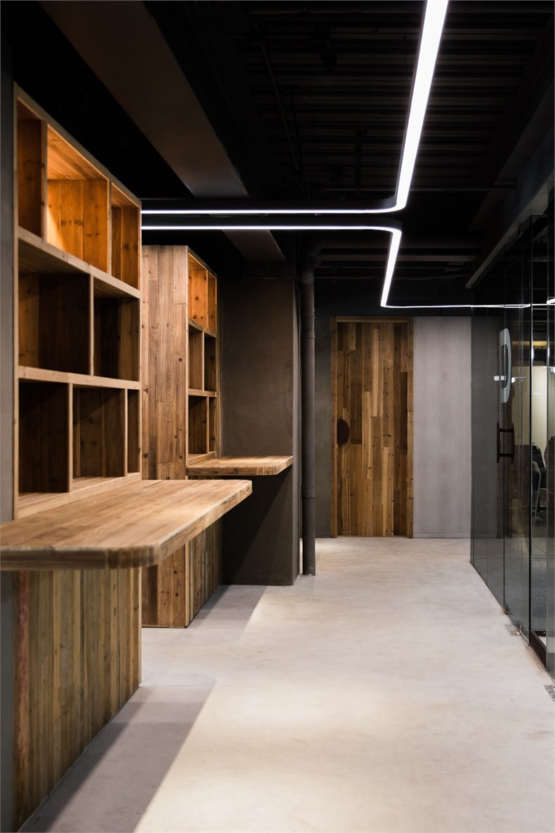 PART STUDIO是一家藝術(shù)留學(xué)教育機(jī)構(gòu),場(chǎng)地形態(tài)為25*10M長(zhǎng)方形,入口處室外屋頂為建筑機(jī)電設(shè)備平臺(tái)。室內(nèi)空間需求多樣:一間30人左右的教學(xué)空間(同時(shí)可轉(zhuǎn)換成50人左右的講座及展覽空間)、4間獨(dú)立小教室、公共辦公室、接待室、VIP休息室、衛(wèi)生間、儲(chǔ)藏室等