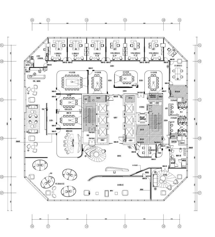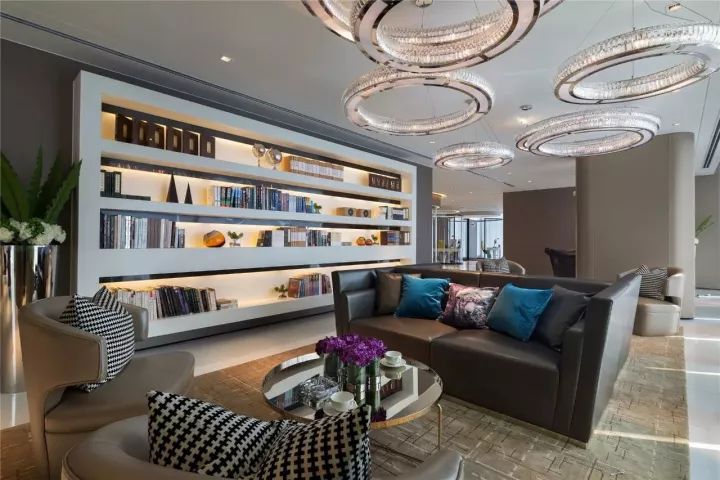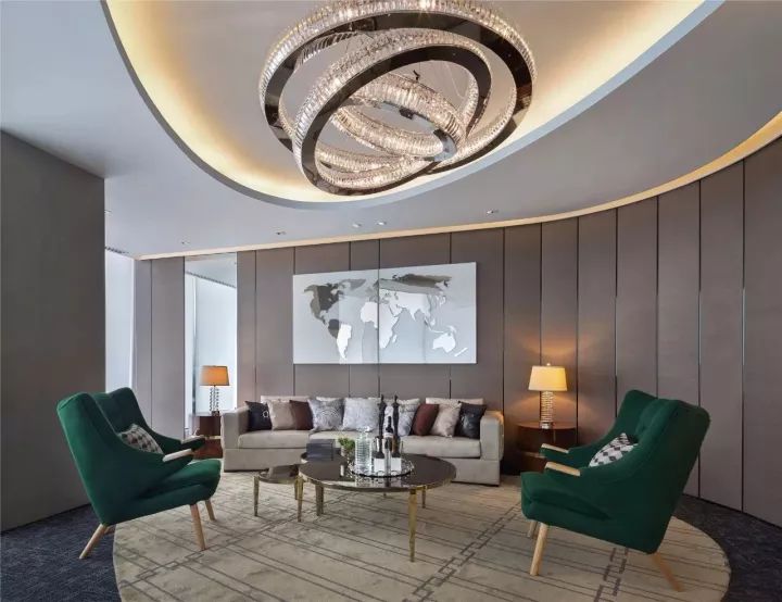 圓形的吊頂由內(nèi)向外凸出,看上去非常有層次,節(jié)奏感也十分強(qiáng)烈