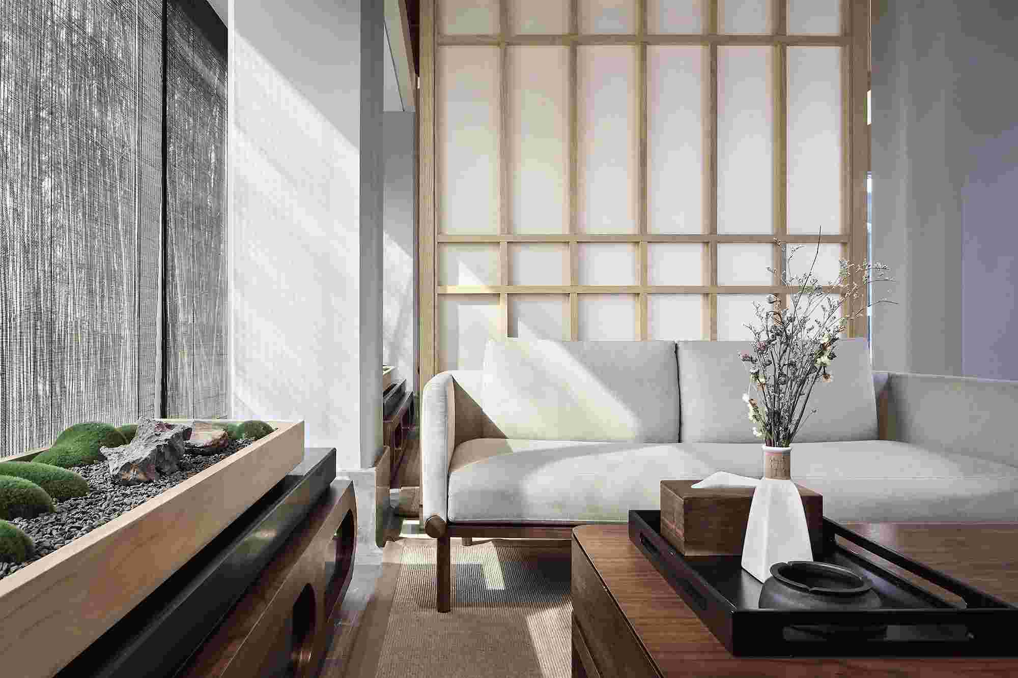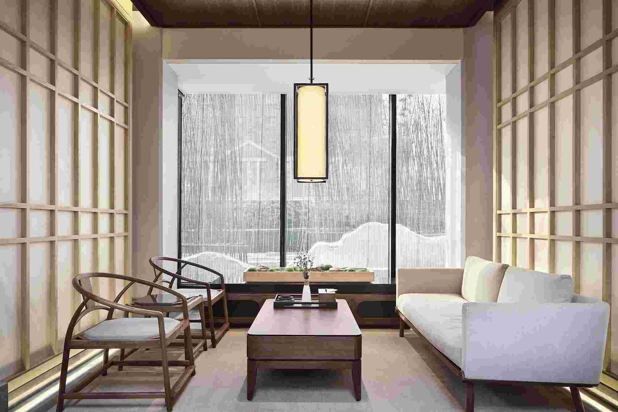 臨窗一側(cè),空間切分成若干會(huì)客區(qū),靜靜懸掛的方燈下,線條舒展的中式明椅明幾與素色沙發(fā)相對(duì)而列,輕輕的訴說(shuō)著什么。
