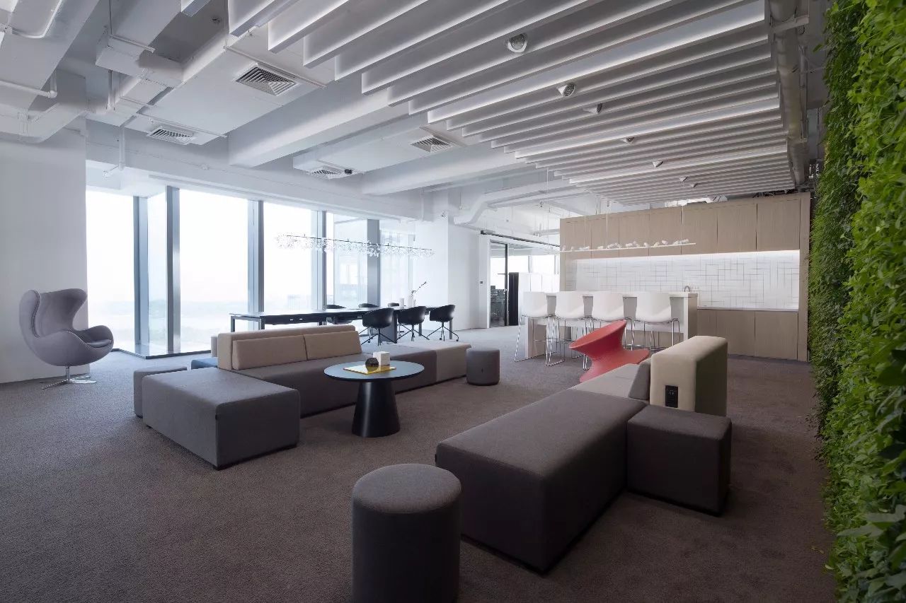 為了弱化傳統(tǒng)辦公室的緊張氛圍,公共休閑區(qū)配置了特別大的面積,包括大面積的垂直綠化墻、廚房及水吧。成為員工聚會、休息,或工作交流、頭腦風(fēng)暴的聚集地。模塊化的沙發(fā),能實現(xiàn)多變的組合方式,以及滿足員工360度全方位的無障礙溝通。