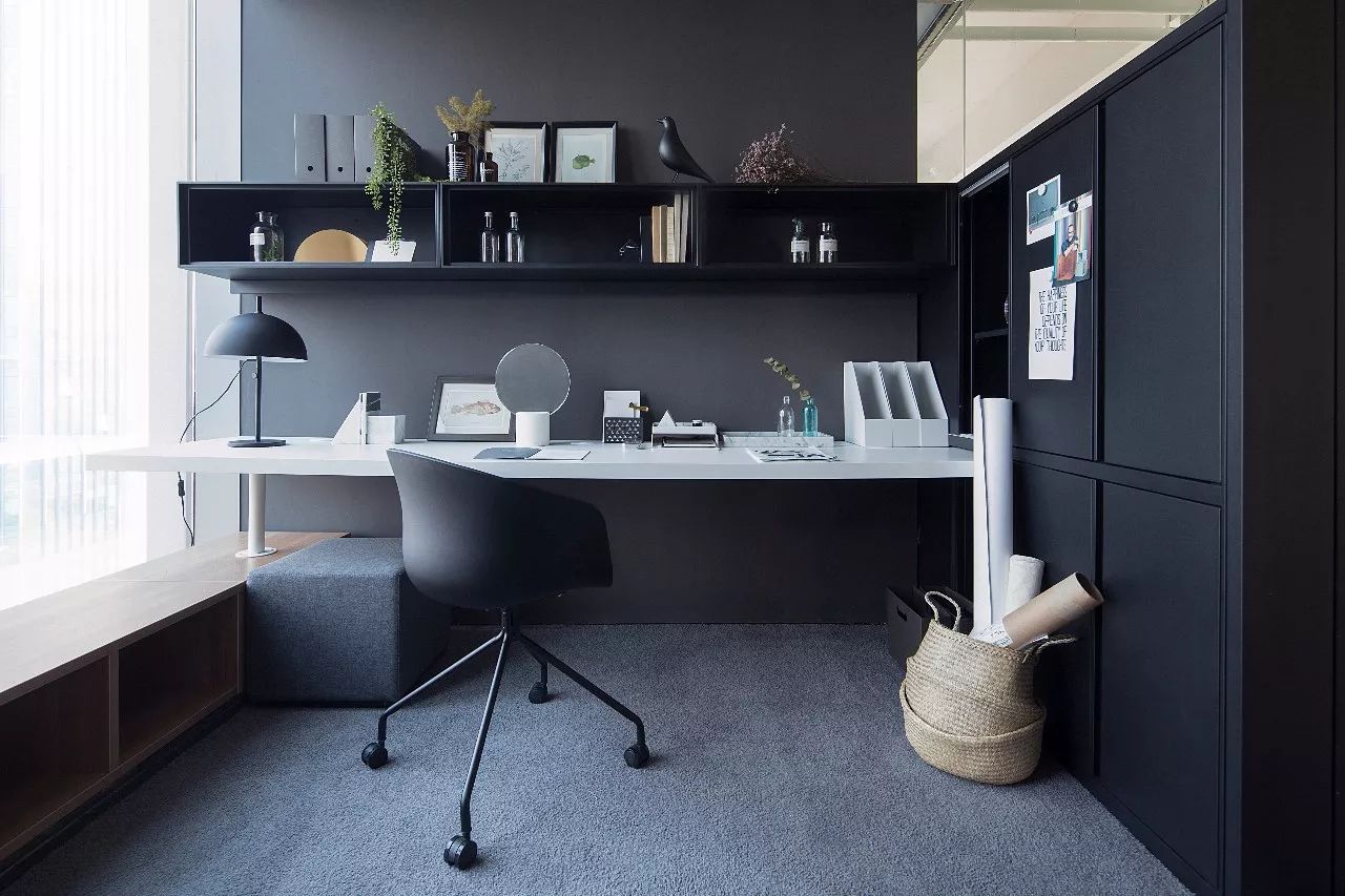 9㎡部門經(jīng)理辦公室,在功能布置上做了很大的改變和創(chuàng)新,所有的功能構(gòu)件沿著空間四周墻面布置,儲物、辦公、休閑、閱讀及交流等,非常巧妙的銜接,使得小面積卻擁有寬敞舒適之感。