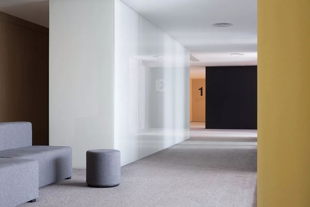 會務(wù)中心層的發(fā)光玻璃墻,滿足了整個空間的照明,同時又成為空間的視覺核心,營造出純粹、安靜、脫俗的藝術(shù)辦公空間氛圍。