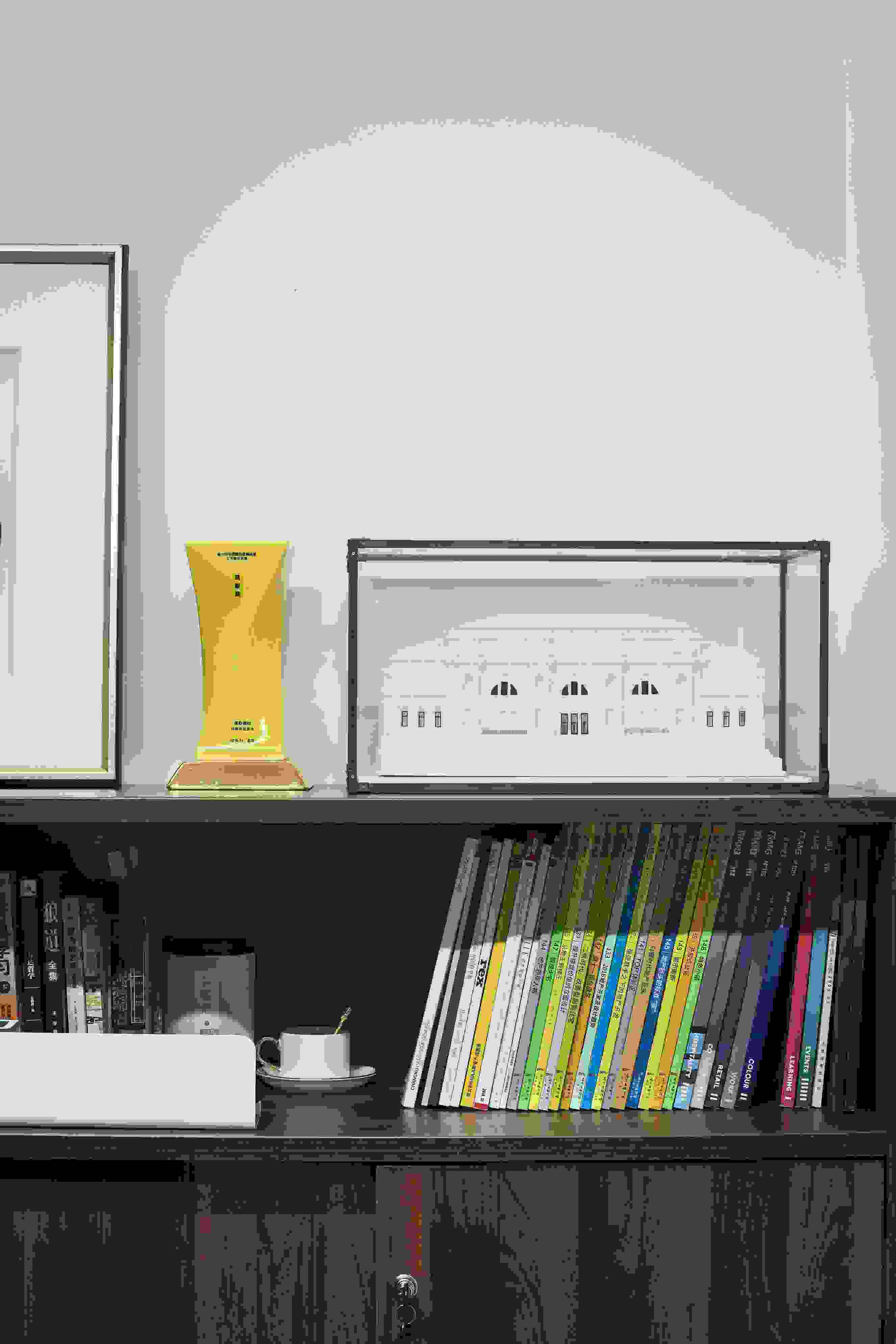 室內(nèi)的墻身以簡約紋理的乳膠漆配搭木書櫥,極簡中不失秩序,結(jié)合暖光燈帶、大理石前臺和地毯,使空間感覺更加舒適自在。