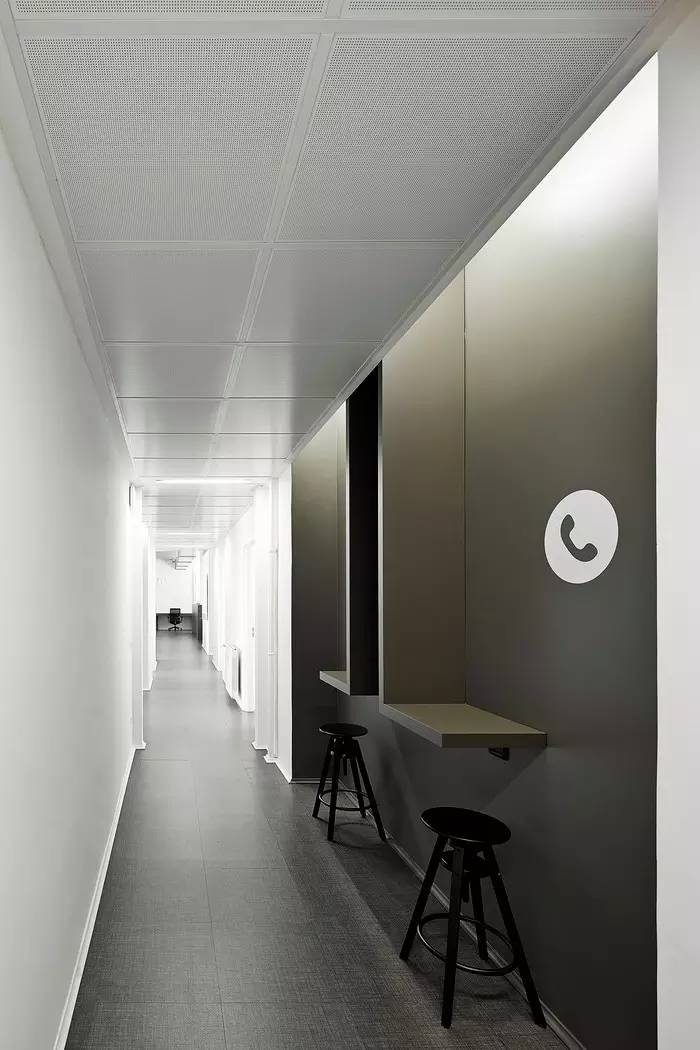 3、黑白灰色調(diào)極簡主義辦公室設(shè)計(jì)裝修:辦公室的設(shè)計(jì)是非常開放的概念,但它們?nèi)匀粰M跨兩個房間,從主走廊分開。設(shè)計(jì)師們在設(shè)計(jì)這間辦公室的時(shí)候,就想到了“靠墻工作”的理念。這意味著他們希望將工作空間組織在一個區(qū)域內(nèi),而將其他區(qū)域留給交流、會議、休息以及可能在辦公桌外進(jìn)行的工作的更多社交方面。設(shè)計(jì)在高處的暗藏?zé)魩?,讓干凈的白光從天花板上照射下來,反射到干凈的墻面,讓物品保持明亮和開闊的視野。在簡潔的線條、極簡主義的材料、開放的空間和對組織的強(qiáng)調(diào)之間,辦公室提供了一個幾乎沒有雜亂干擾的自由空間,讓員工以更謹(jǐn)慎的寧靜感為客戶服務(wù)。