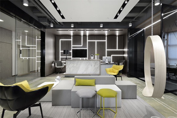 辦公室設(shè)計(jì)從空間規(guī)劃和配色入手,強(qiáng)調(diào)功能性設(shè)計(jì),線條簡單流暢,豐富的燈光設(shè)計(jì)讓整個(gè)空間又多了些活力,活潑不失穩(wěn)重。黑色、金色把生活與藝術(shù)充分融合,色彩對比強(qiáng)烈,裝飾手法奢華而不奢侈。讓空間看起來簡潔,大氣。