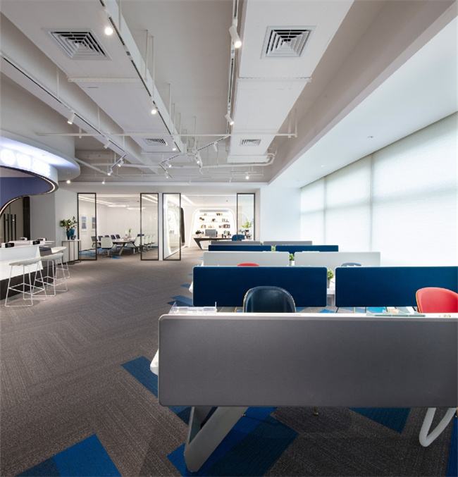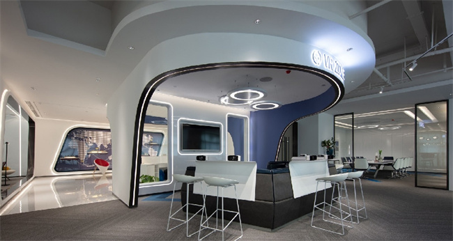 4、本案例的公司從事的是高科技行業(yè),甲方要求室內的空間設計要具有未來的科技感。因此在500平辦公室裝修設計中,運用了曲面弧形的流線型設計,給人營造了一種置身與太空艙的感覺。